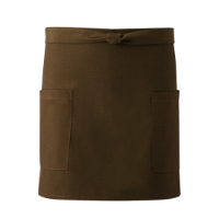 軽量でお手入れもかんたんなショートエプロン。ポケットはマチ付ポケットが左右に各1つ付いています。素材に綿を混ぜることで腰紐がずれにくく、洗濯後の乾きも早いので頻繁にご使用される方に最適です。