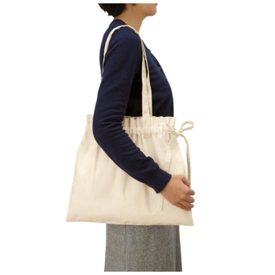 比較的薄手ですが、シーチングよりは厚手で透けにくい5オンス生地です。くしゅっとしたフォルムに個性が光る!気分もUPしてくれるバッグ